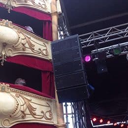 The dispersion, sound quality and power out of a box with this small footprint were the main reasons Dirk Brysbaert, sound manager for the Sint-Jacobs stage, choose for the Turbosound Flex Array. Dirk is a long time Turbosound friend and lover, going back to the TMS, Floodlight and Flashlight days.